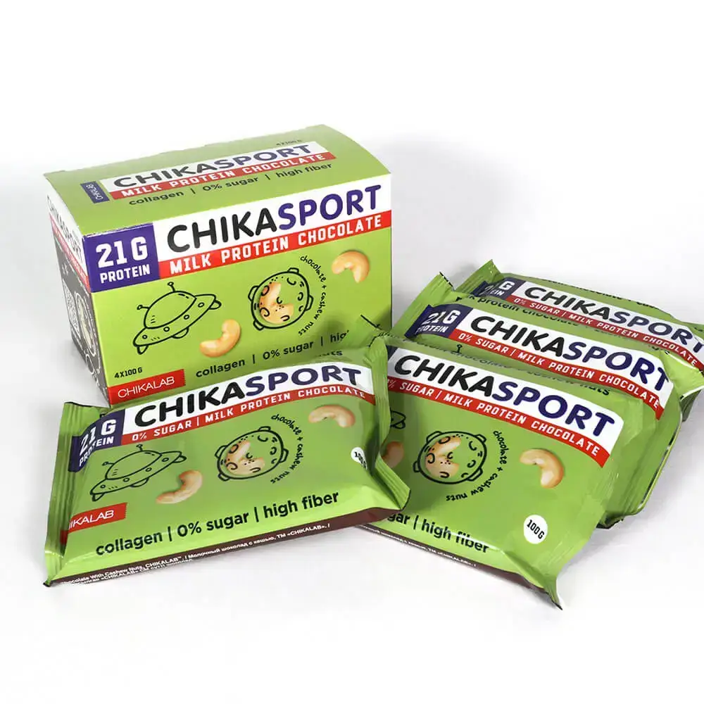 Discover the irresistible blend of flavor and fitness with Chikalab ChikaSport Protein Milk Chocolate Bars. Indulge in a convenient 4x100g pack designed for on-the-go nutrition.