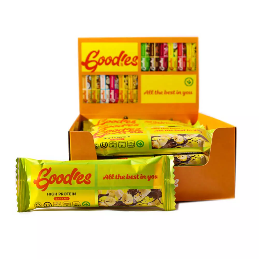 Goodies protein bar with coconut is a great snack at any time of the day. Goodies products are made in its own factories with the best and most modern equipment. Professional technologists develop and control the quality of all production processes.